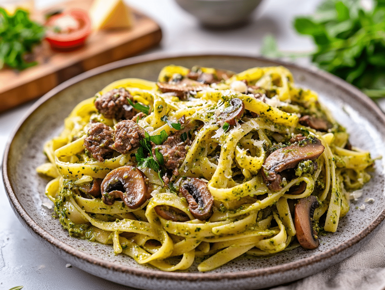 Truly, Savoury Beef and Pesto Pasta represents the best of both worlds: the depth and comfort of a satisfying beef dish combined with the freshness and complexity of a good homemade pesto. Served hot and topped with a side salad, it’s a meal that feels rustic, yet thoughtfully gourmet—perfect for cozy evenings or impressing friends with minimal effort.