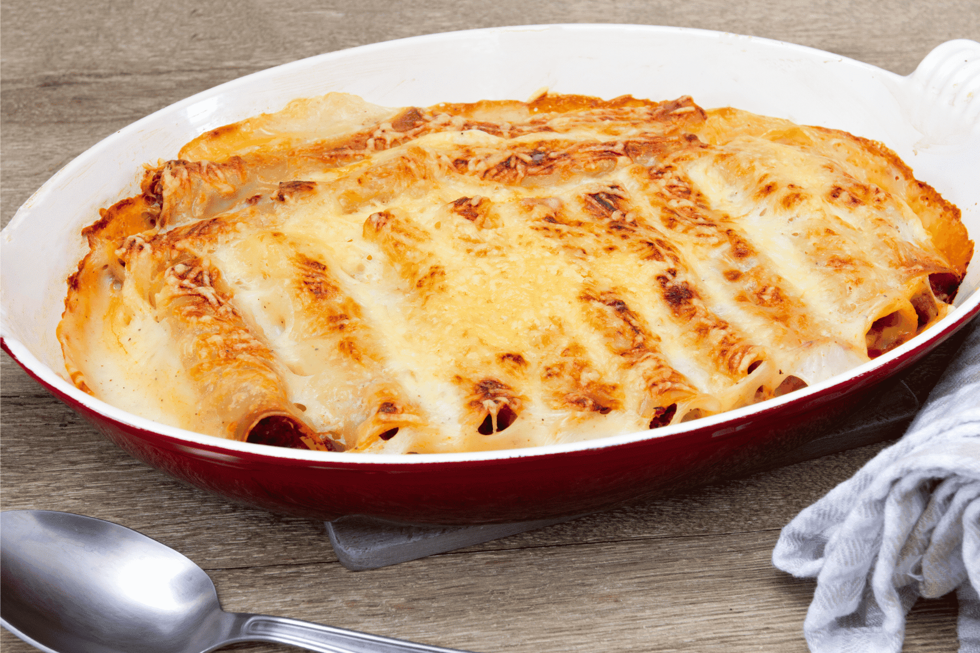 - Brown the cannelloni under the grill or in the oven for 10 minutes until nicely browned.