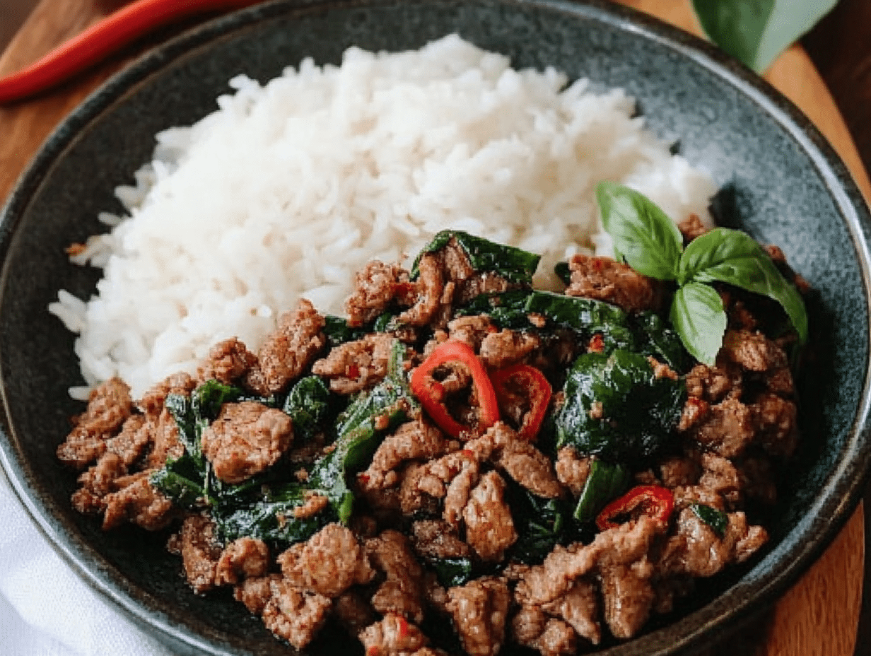 This dish traces its origins to the bustling streets of Thailand, where it became a popular quick meal. It’s traditionally served with steamed jasmine rice and sometimes topped with a fried egg for an extra layer of richness.