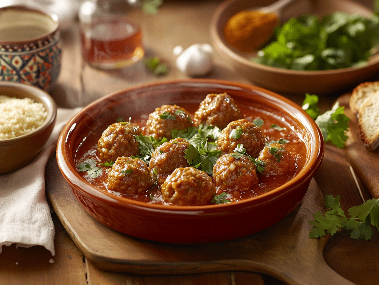 The Meatball Tagine is a heartwarming dish that beautifully showcases the rich culinary heritage of North Africa, a region renowned for its vibrant flavors, aromatic spices, and deep-rooted traditions. This recipe draws its inspiration from the traditional tagine, a conical clay pot that hails from Morocco and surrounding areas. The tagine’s unique shape facilitates slow cooking, helping to concentrate flavors and create a depth of taste that is synonymous with North African cuisine. While the recipe is adapted to suit modern kitchens without requiring a traditional tagine, the spirit and essence of this iconic dish remain intact.