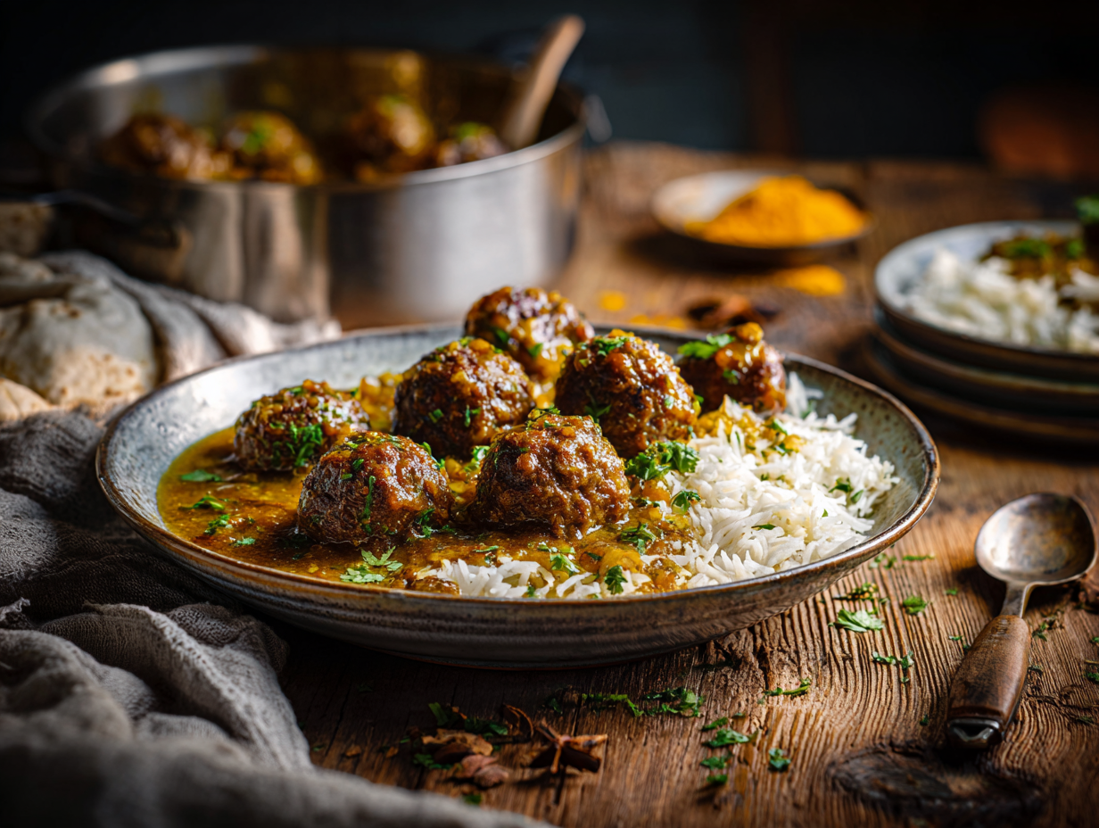 Meatballs also offer a practical advantage: they’re versatile, easy to prepare in advance, and family-friendly. You can make a big batch and freeze them for future use or adapt them with different spice blends for a range of dishes. Their rounded shape also gives them a larger surface area to catch all the curry sauce, soaking it up like small flavor bombs.