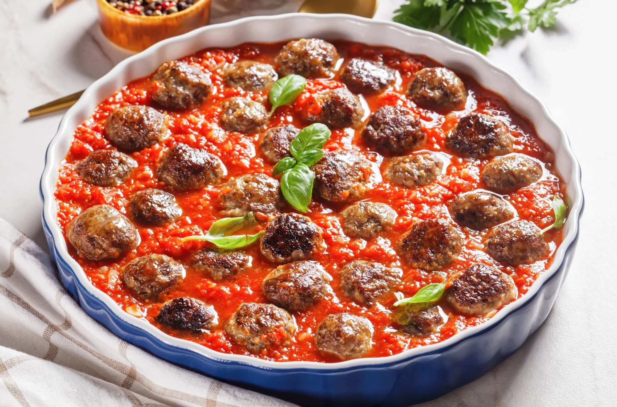 - Once the meatballs are baked, take them out of the oven and remove excess grease.