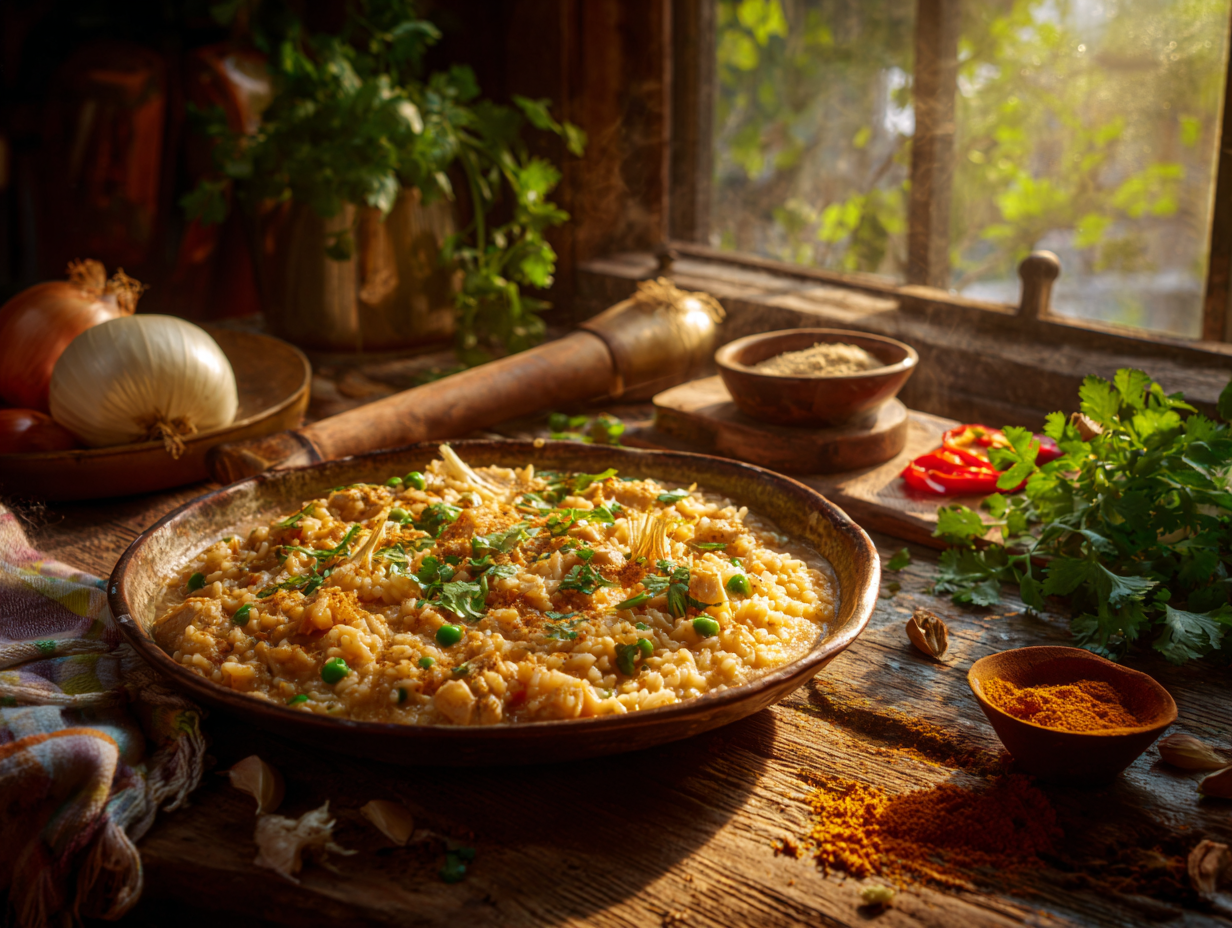 At its core, arroz atollado reflects the Colombian ethos of resourcefulness and hospitality. Many native ingredients shine in this dish, including short-grain or starchy rice (similar to Arborio rice used in Italian risotto), cumin, paprika, and cilantro. These aromatics and spices lend warmth, richness, and color to every bite. The use of a sofrito-style base—onions, garlic, and bell peppers sautéed in oil—is a classic Latin American technique that adds depth and rounds out the savory chicken and rice.