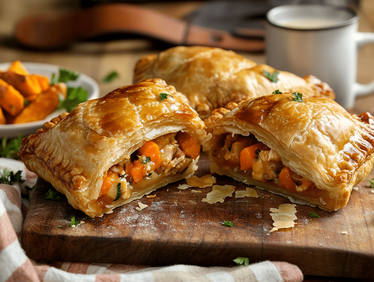 One noteworthy step in this recipe is ensuring that the filling is free of excess moisture. Any residual liquid from the cooked vegetables or chicken should be drained before assembling the hand pies. This prevents the puff pastry from becoming soggy and ensures a crisp, golden crust. Another essential tip is sealing the edges properly—pressing them with a fork not only prevents leaks but also gives the pies a decorative finish.
