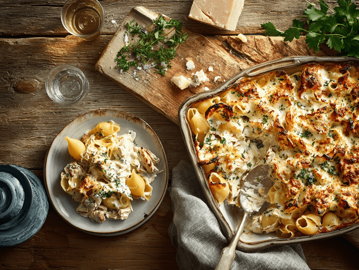 Like many cherished recipes, this Smoked Chicken and Artichoke Stuffed Pasta dish has a story behind it—one that speaks not only to a love for Italian-inspired comfort food but also to the value of family, creativity in the kitchen, and a touch of culinary improvisation.