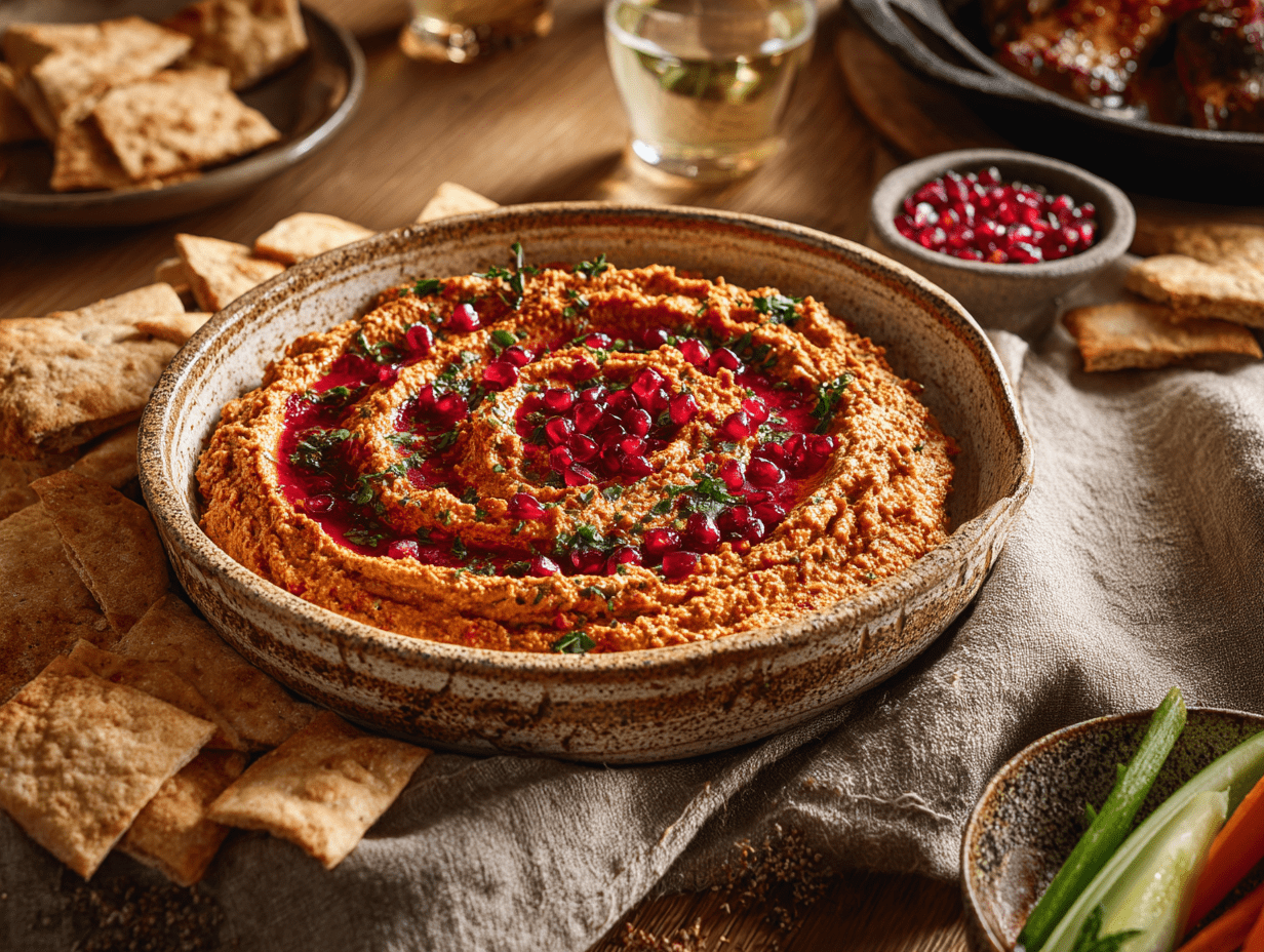 The marriage of lamb and pomegranate has graced Middle Eastern tables for millennia, a testament to the region’s mastery of balancing rich, savory proteins with the bright acidity of fruit. This Lamb Mince and Pomegranate Muhammara Dip represents a contemporary interpretation of these time-honored flavor pairings, transforming the classic Syrian pepper and walnut spread into something altogether more substantial and celebratory.