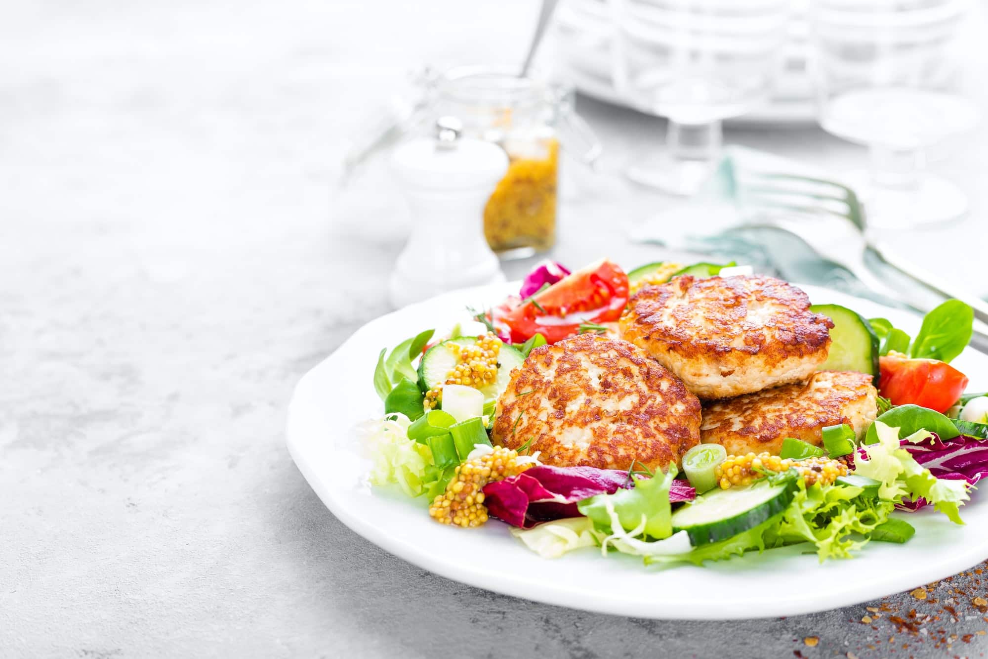 - Add all the dressing ingredients into a jam jar, screw the lid on tight and give it a good shake. Plate up the meatballs on top of the vegetables and sprinkle the spring onion, herbs, and dressing.