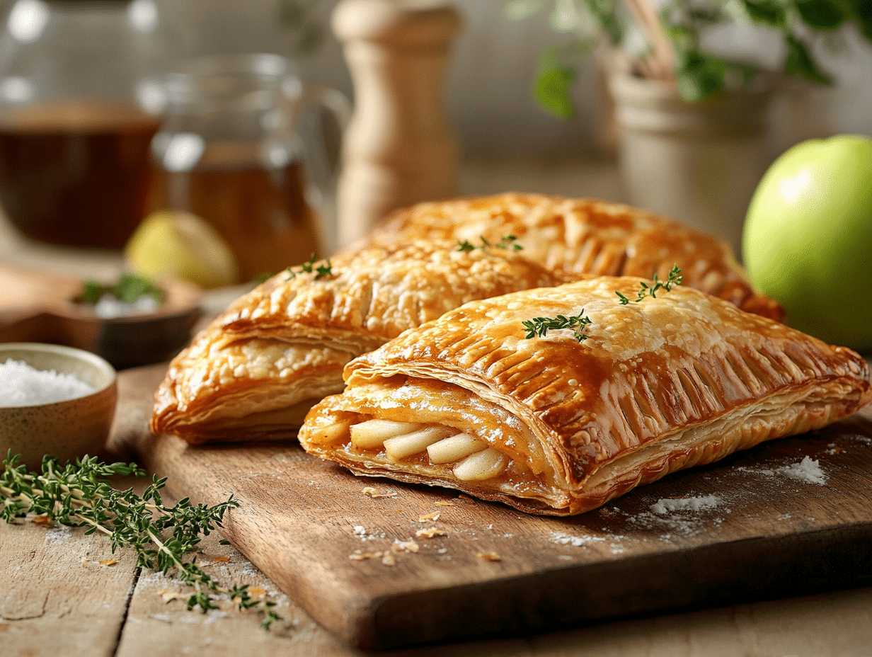 The Pork Mince and Apple Savory Turnovers are an ode to the rich culinary traditions of British cuisine, paired with a dash of creativity to bring something fresh and exciting to your dining table. Rooted in the heritage of classic British meat pies, these turnovers feature a combination of tender pork mince, tangy apples, and aromatic thyme, all enveloped in golden, flaky puff pastry. This fusion of sweet and savory flavors honors the timeless appeal of rustic comfort food while showcasing the versatility of key ingredients.
