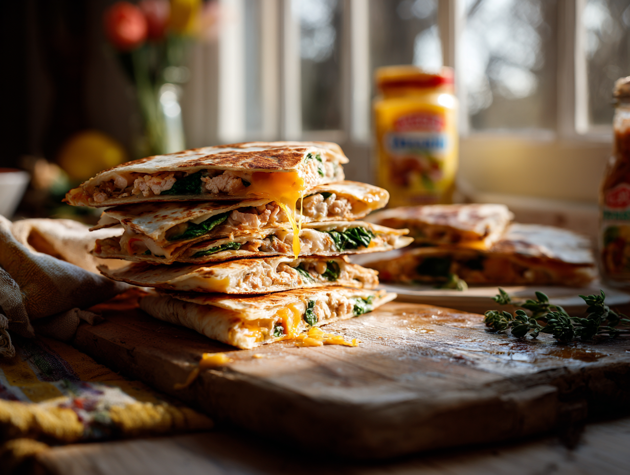 If there’s one universal truth about family kitchens, it’s that leftovers are inevitable. Whether it’s a half-loaf of bread, a spoonful of rice, or those final stubborn tortilla shells hiding in the back of the pantry, we all encounter the same predicament: what do we do with the odds and ends that don’t quite fit anywhere? For my family and me, tortillas have always been among those items. They come in packs of eight or ten, and after taco night or enchiladas, there are always a few stubbornly lingering in the fridge. That’s how this Easy Turkey, Cheese, and Spinach Quesadilla came to life—not from a fancy plan or culinary epiphany, but from the sheer desire to avoid food waste.